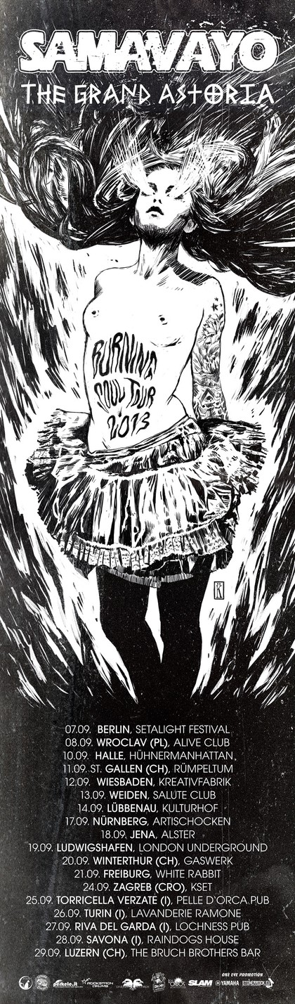 Turneja kodnog naziva ''The Burning Soul 2013'' objedinjuje ova dva odlična banda u jednu cjelinu. Razuzdana svita rastura gradove jugoistočne Europe sa brojkom od 18 koncerata unutar 21 dan. Oba banda uživo predstavljaju nove materijale. Očekujte ritual distorzije, melodije, pomiješane psihodeličnom atmosferom, pravo među vaša slušna osjetila. Zavirimo zajedno iza ''Željezne zavjese''. Samavayo nisu stranci što se tiče izdavanja albuma i sviranja koncerata. Postoje od 2000.g. Do sada službeno bilježe 4 dugosvirajuća albuma i nekoliko EP-eva. U Zagreb dolaze na krilima novog albuma naziva 'Soul Invictus'. Nimalo ne zaostajući The Grand Astoria su u relativno kratko vrijeme postojanja [od 2009.] napravili pravu pomutnju na 'underground' sceni. Neumorni na stageu, prijeđenim kilometrima i muziciranju. Zadnji uradak 'Punkadelia Supreme' je pravi dokaz tomu.