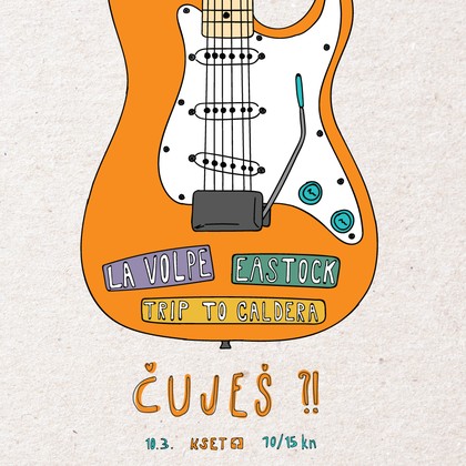 S trećim mjesecom nam stiže i treća večer šeste sezone natjecanja za neovisne bendove i izvođače Čuješ?!. U utorak, 10. 3. svoje će snage u KSET-u odmjeriti La Volpe, Eastock i Trip to Caldera!