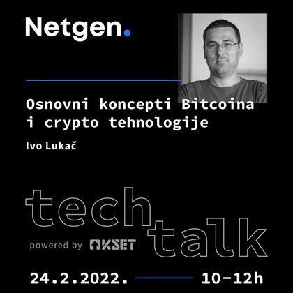 U četvrtak, 24.2. Ivo Lukač iz Netgena će proći kroz osnovne koncepte Bitcoina koji se na isti ili sličan način koriste za sve ostale crypto valute i druge web 3.0 primjene.