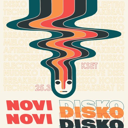 Novi Novi Disko Disko je konceptualni party s jednim ciljem: hedonističko uživanje u glazbi. U petak, 25.3. KSET postaje plesni podij popraćen šarenim svjetlima i odsjajima velike disko kugle. Dođi i zapleši uz ritam struje, popij piće i uživaj.