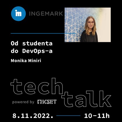 Bivša studentica FER-a Monika Miniri provest će te kroz svoj put, kako je izgledao njezin početak u studentskim danima te kako joj dani izgledaju sada kao DEVOPS inženjeru u Ingemarku.