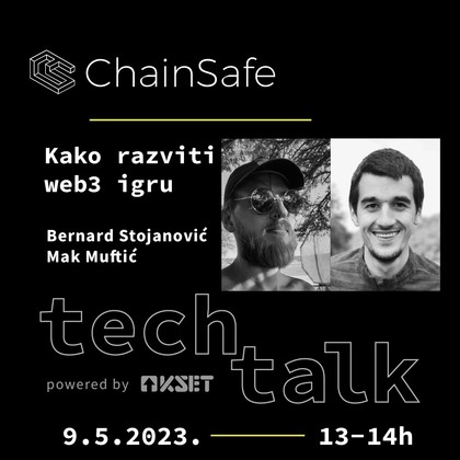 U utorak, 9.5. u KSET-u te čeka još jedan Tech Talk tijekom kojeg će ekipa iz ChainSafea, Mak Muftić i Bernard Stojanović, predstaviti osnovne pojmove potrebne za izrađivanje igre koristeći blockchain tehnologiju.